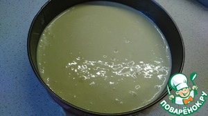 Выливаем в форму, застеленную бумагой для выпечки. Лучше в прямоугольную или квадратную. Я отвлеклась, поторопилась и использовала круглую, но это ничего, просто кусочки были бы ровнее.