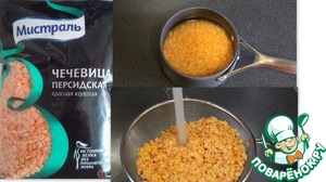 • Чечевицу замачиваем в воде примерно на 1 час. Я использовала чечевицу ТМ "Мистраль". Затем промываем.