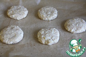• Кладем на протвить, застеленный перзаметной бумагой и ставим в предварительно нагретую до 220С (400F) духовку на 20 минут. Готовые котлеты можно приготовить заранее и хранить в холодильнике.