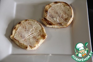 • Теперь собираем бургер. Хлеб немного подсушиваем на сковороде