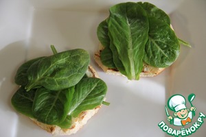 • Нижний кусок подсушенного хлеба смазываем майонезом