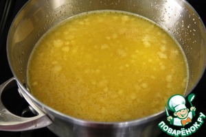 Затем доваляем приготовленный сахарный сироп и молоко с шафраном.