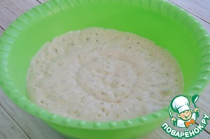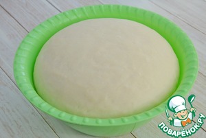 Оставить тесто на расстойке 1 час, вот так оно увеличится.