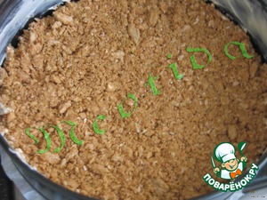 Разъемную форму застелить бумагой, смазать маслом бортики и выложить масляно-хлебцовую смесь, плотно утрамбовать и поставить в холодильник минут на 30.