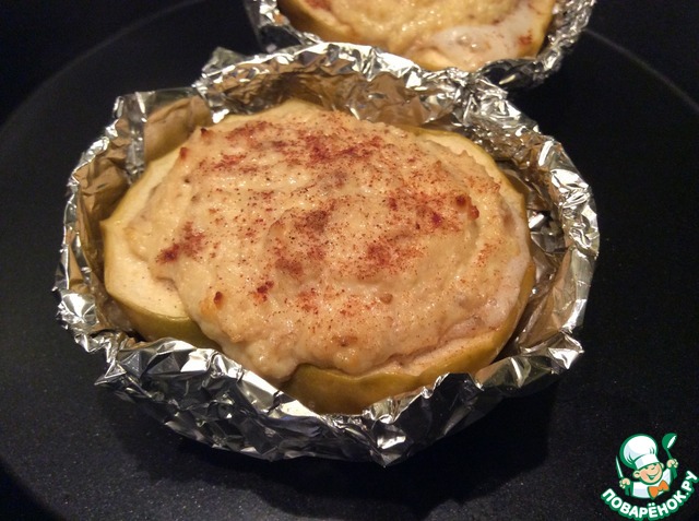 Рецепт «Яблочные лодочки с творогом и бананом»: