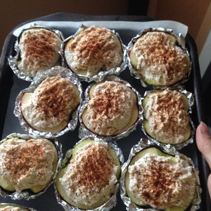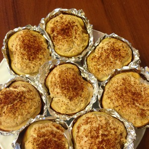 Ставим в духовку на 20-30 минут, в зависимости от размера яблок. Можно аккуратно проверять мягкость вилкой.