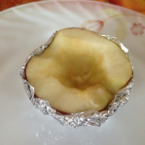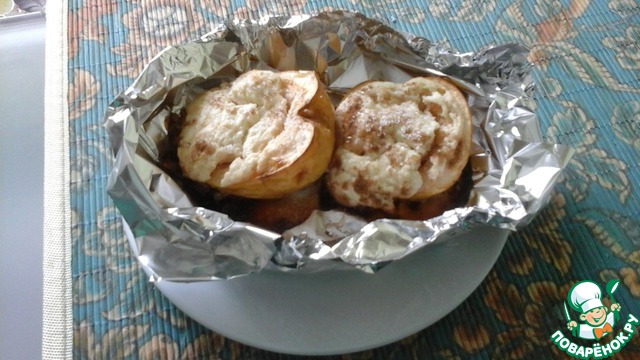 Подготовленные яблоки оборачиваем в "лодочки" из фольги, как на фото. Сверху не закрываем. -