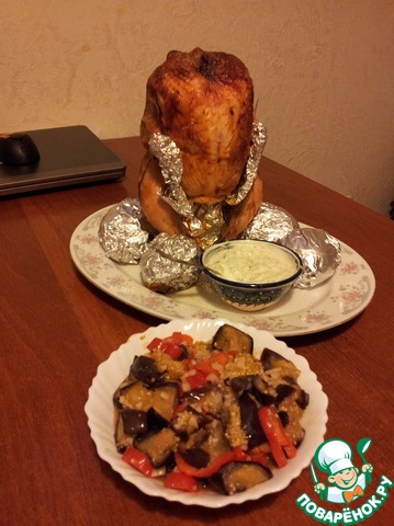 З.ы. я когда запекала курицу, чтобы она не пригорала, надевала на нее пакет для запекания. Все получилось отлично.