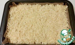 Форму для запекания смазать подсолнечным маслом. Я при любом запекании кладу еще бумагу, но это не обязательно. Выкладываем картофель, разравниваем и посыпаем тертым сыром. Ставим в разогретую до 180 градусов духовку на 20 минут, чтобы сыр подрумянился.