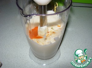 - Сок морковный (если майонез слишком густой, можно и 2 ст.л.) — 1 ст. л.
