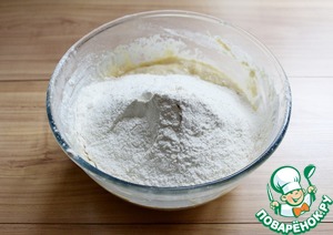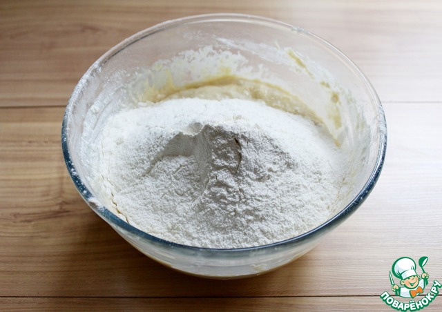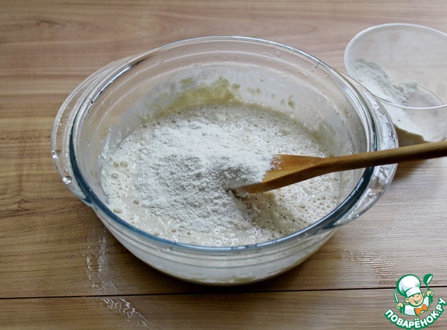 Просеять в миску 2-3 ст. л. муки и перемешать.