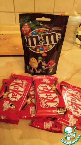 - Конфеты (KitKat - 5 квадратных пачек + M&Ms - 2 большие пачки )