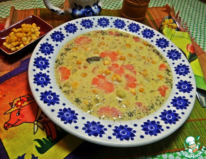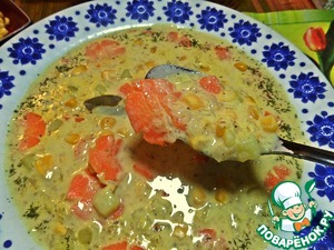 Все мы знаем про сырный супчик из плавленного сырка. Моим детям он очень нравится, варила много-много раз, но всегда хочется разнообразить его, добавляю или кукурузу или горошек или др. замороженные овощи. Неизменными остаются сыр, картофель и морковь))) P.S. Сегодня экспериментирую с хлопьями!