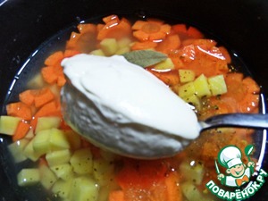 Варить, пока овощи и хлопья не разварятся. Всего минут 15 варился супчик.