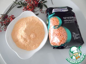 Для начала приготовить чечевичную муку, для этого нужно взять 100гр. чечевицы и перемолоть.
