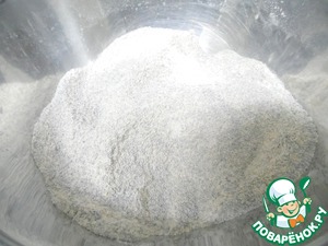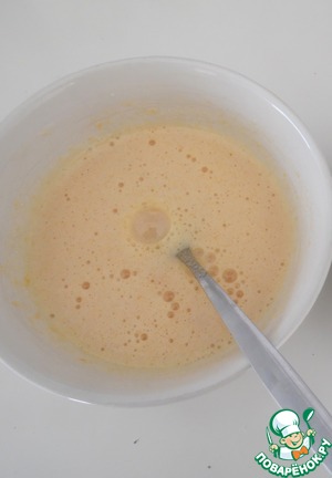 Желтки взбить с сахаром и добавить пол столовой ложки чечевичной муки, до увеличения массы. -