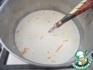 Сливки вылить в кастрюльку и добавить цедру апельсина, довести ПОЧТИ!!! до кипения.
