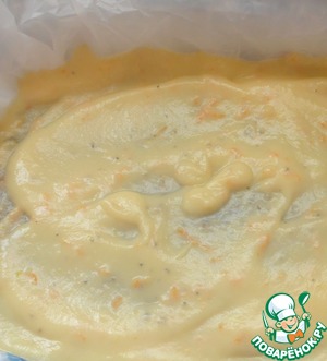 Застелить дно формы бумагой для выпечки, выложить тесто и разровнять.