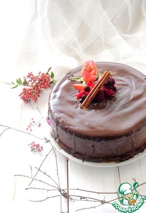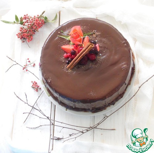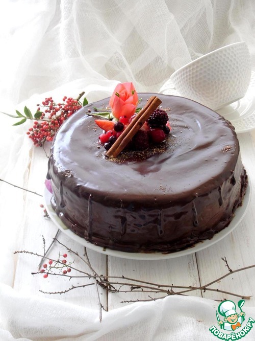 Перемешать венчиком до однородности. Достать торт из формы (положить сверху формы тарелку, открыть плёнку, что была сверху, и перевернуть форму на тарелку) освободить от плёнки. Вылить ганаш на торт. УКРАСИТЬ по желанию. ПРИЯТНОГО АППЕТИТА.