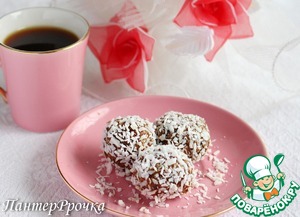 Из массы скатать шарики и обвалять их в кокосовой стружке. Поставить в холодильник еще на 15-20 минут.