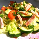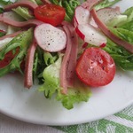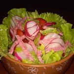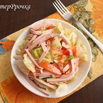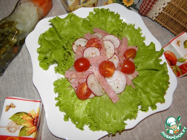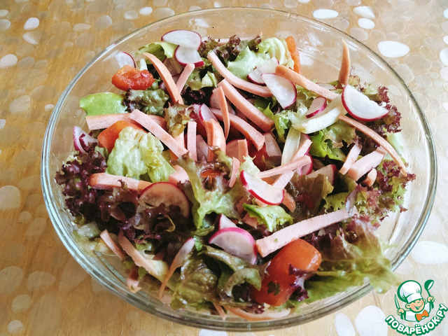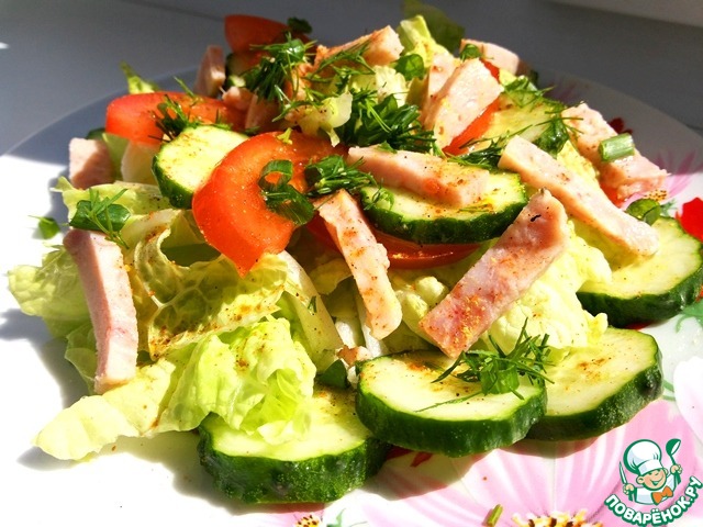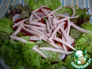 Зеленый салат с колбасой