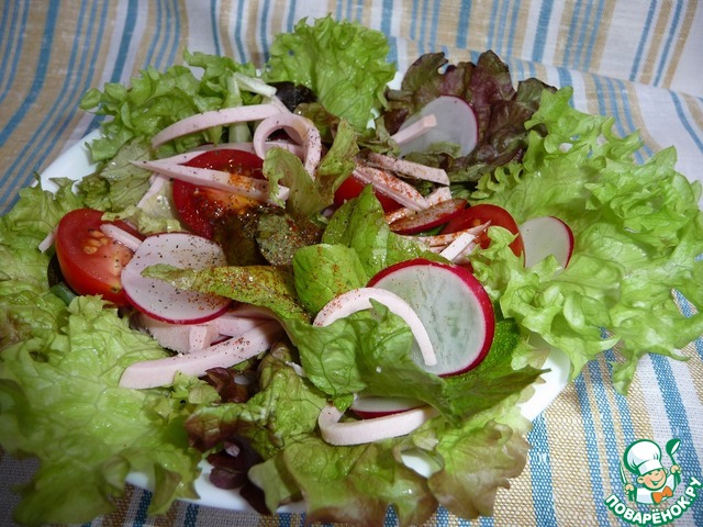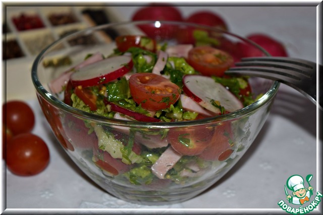 Рецепт «Зеленый салат с колбасой»: