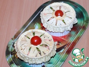 10. Закрываем формочки кружочком, смазываем его сметаной и ставим формы в хорошо разогретую духовку до 190 С