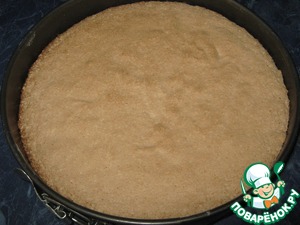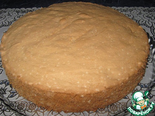 Затем перевернуть, пройтись по краю формы ножом, раскрыть форму, вынуть бисквит. -