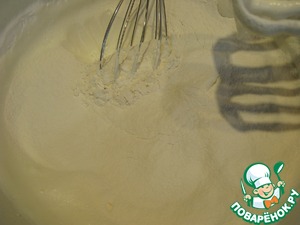 Просеять половину нормы муки. Крахмал можно заменить на какао.