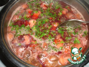 добавили к свёкле муку через просеиватель (чтоб наваристым был бульон)