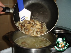 из кастрюли зачепнули бульон и подлили в сковородку для тушения