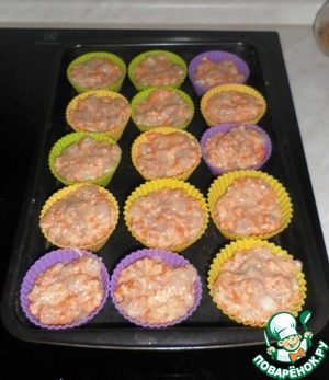 Раскладываем наш фарш по силиконовым формочкам (для кексов).