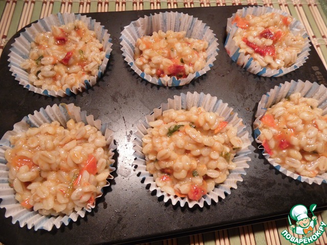 Форму для кексов смазать растительным маслом (или вставить в них бумажные формы). В них выложить перловку. Духовку разогреть до 180°, выпекать 15–20 минут.
