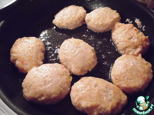 Из полученной массы сформировать котлеты, обжарить их с 2-х сторон на растительном масле до золотистого цвета.