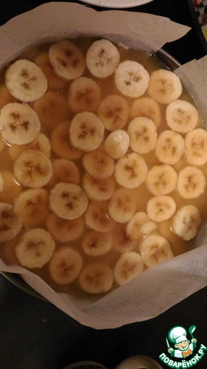Дальше украшаем фруктами (у меня под рукой был лишь банан) и заливаем фруктовым желе, разведенным в 1/2 порции воды.