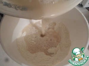 Вводим дрожжи с сахаром и водой.