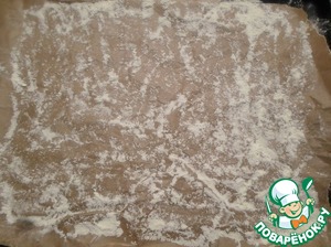 Противень застилаем бумагой для выпечки, посыпаем мукой.