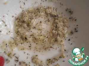 Чеснок пропускаем через чеснокодавку и смешиваем с маслом, прованскими травами и солью.