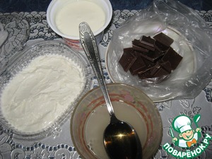 Творожно - сметанный крем и сироп готовы. Шоколад на водяной бане растопить (в пакете), срезать уголок.