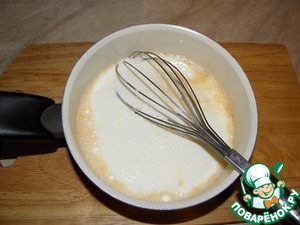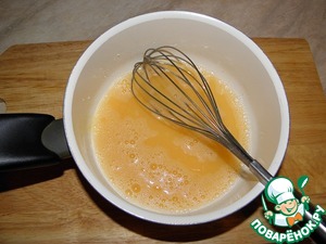 Яйца взбить венчиком с солью и сахаром.