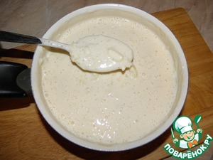 Постепенно добавить муку ( регулируем густоту теста, оно должно тяжело литься с ложки), в районе 2 стаканов