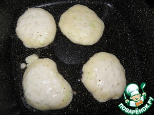 Разогреть растительное масло на сковороде, выкладывать оладьи ложкой, накрыть крышкой и готовить на небольшом огне