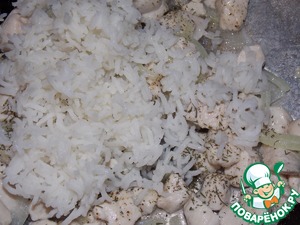 Добавить отварной рис, соль и перец по вкусу. Перемешать. -