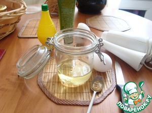 Делаем заправку к салату-домашний майонез. Вместо уксуса я беру всегда лимонный сок. Можно отжать сок из лимона, я покупаю готовый сок для салатов. Берём баночку, в которой майонез будет стоять, если останется. Наливаем в неё масло подсолнечное, кладём сахар и соль, добавляем горчицу столовую. Перемешиваем.