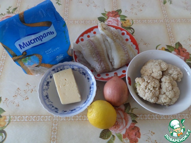 Ингредиенты для «Запеканка с рисом, рыбой и цветной капустой»:
