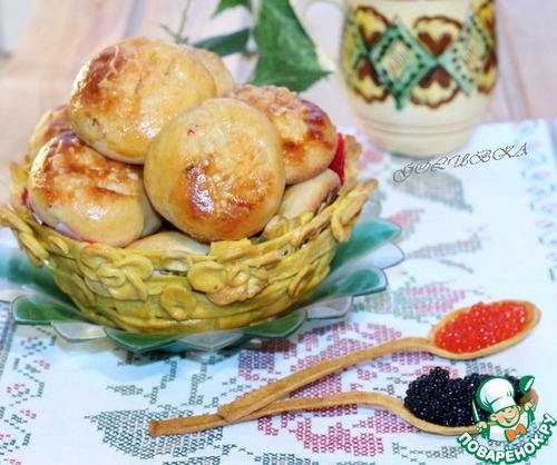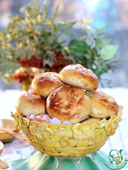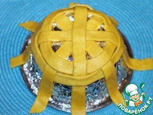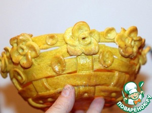 17. Ставим корзиночку па противень, смазываем взбитым желтком с молоком и выпекаем в духовке при t 190 С 20 минут, до золотистой корочки. Выпекаем дном вверх. Как на фото.