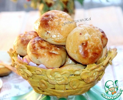 7. После подъема булочек переводим температуру духовки на 180-190 С и печем до золотистой корочки (20-25 мин.). Вынимаем, смазываем взбитым желтком, посыпаем тертым сыром и ставим в духовку до расплавления сыра (1-2 мин).
