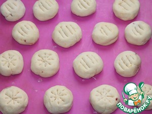 6. После первого подъема делим тесто на 16 частей. Формируем булочки и выкладываем на противень (силиконовый смазывать маслом не надо) на небольшом расстоянии друг от друга. Смазываем булочки молоком и ставим в духовку для подъема. Включаем духовку на минимальный обогрев (t 40 С).