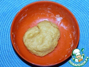 5. Собираем тесто в шар, накрываем пленкой и ставим в теплое место для подъема в 2 раза.