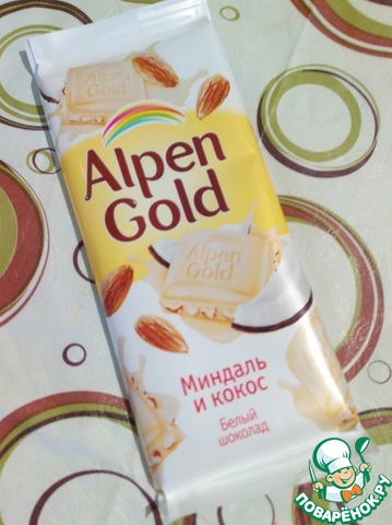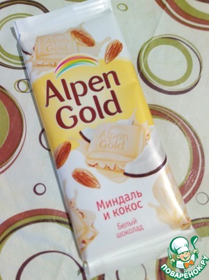Для заварного крема я использовала такой шоколад. Можно просто использовать белый шоколад и добавить дробленый миндаль и кокосовую стружку. Но так проще)))